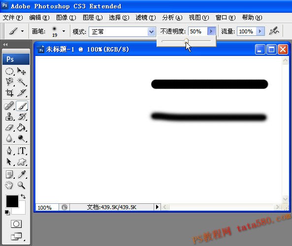 4、当画笔的硬度调为0时,画出的效果就有明显的差别,如下图所示: