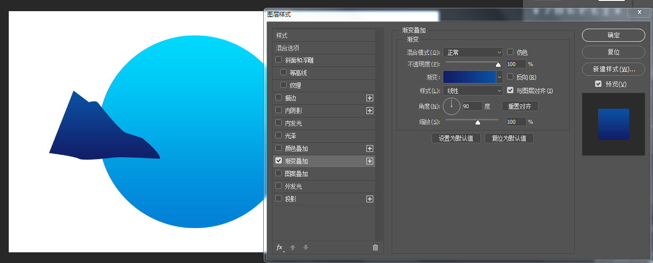 添加远处海岸线图层,给它一个渐变叠加,我这里选择的是群青到青莲的渐变。