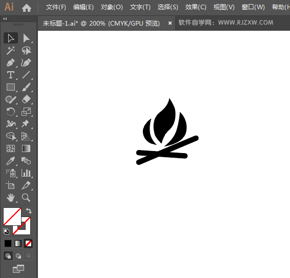 第1步、打开ai2019软件,使用钢笔工具,绘制下载的火焰出来,效果如下:
