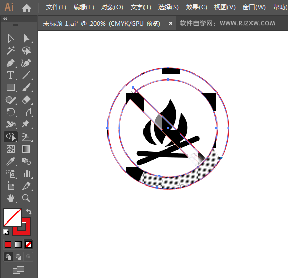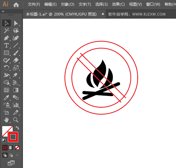 第6步、然后再给矩形上面,输入禁止燃烧的效果出来,效果如下: