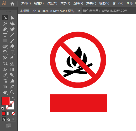 第5步、然后给下面的图形填充红色,还在下面绘制一个矩形。