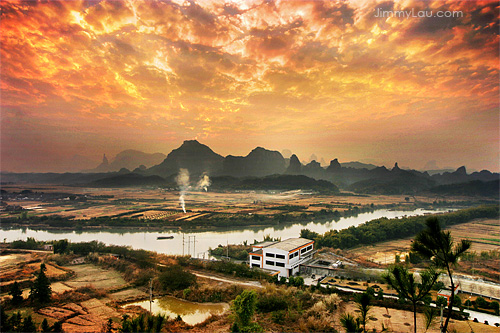 制作耶稣光之前需要找一副有天空的素材,最好有点霞光或浓厚的云彩。然后复制图层并去色,用单行选框工具复制一条单像素图像,然后变形拉出光线效果,后期变形,修改图层混合模式及不透明度得到初步的透射光,再用蒙版控制光线范围,并微调颜色就可得到想要的效果。最终效果