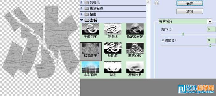 | 4、执行滤镜——素描——铬黄。 |