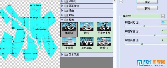 | 3、执行滤镜-纹理-龟裂纹,参数设置如下图。 |