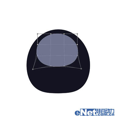 | 2、选择"钢笔工具"在椭圆上绘制一个脸部的形状。 |