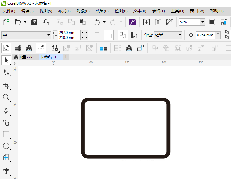 第1步、绘制一个长方形出来,设置一下圆角。如下图: