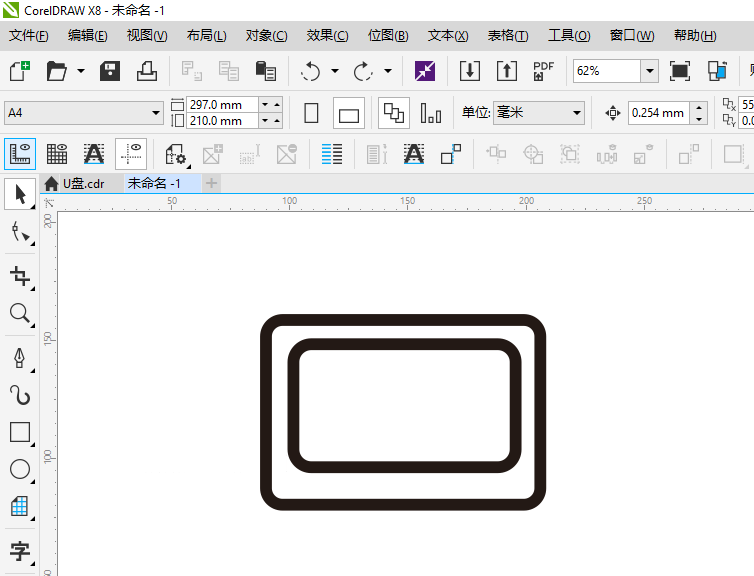 第2步、同样的方法,绘制一个小的长方形,也倒圆角。如下图: