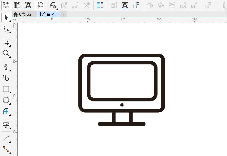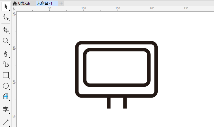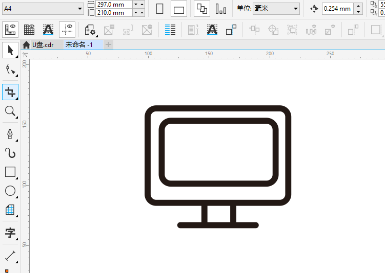 第4步、再底部下面,绘制一条直线出来,这样显示器就有样了。