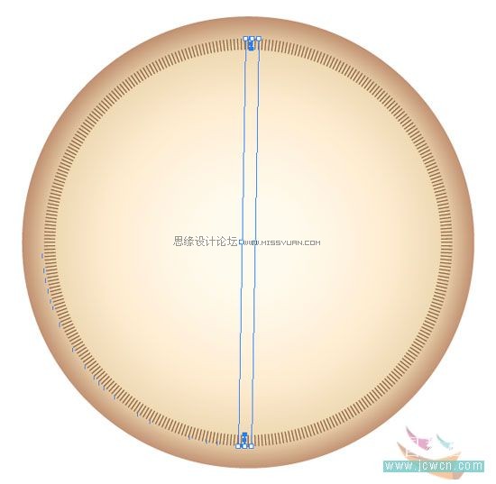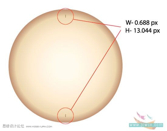 2.在圆的上下画两个在同一垂直线的小长条,大小长度要一样,颜色同渐变的深色,然后群组