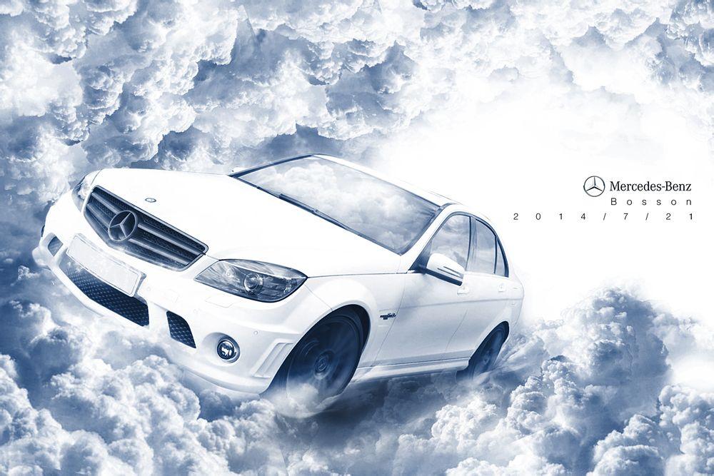 本主要是用蓝色大气的奔驰汽车教程,效果图看上去不复杂,不过的时候有很多细节需要处理。首先是云彩部分的,并搭建出想要的云彩组合图案;再加入汽车,根据光源位置调整局部明暗,轮胎位置要增加动感气流;最后是整体把控,把车云等完美融合,再渲染好颜色即可。
