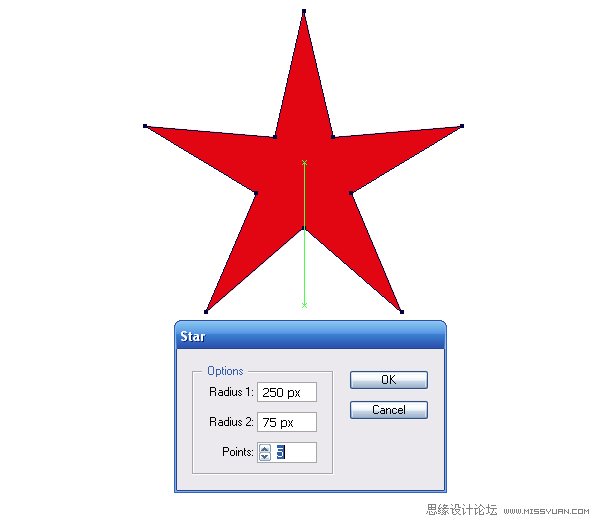 1.我们开始制作使用星形工具制作海星的基本形状。我建议你采用跟本文一致的参数,这样在整个教程制作的过程中你就不需要再考虑尺寸对最终效果的影响了。