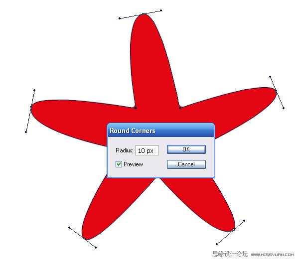 3.选中所以锚点,然后“效果-风格化-圆角”,在弹出的对话框中把圆角半径设为10px。