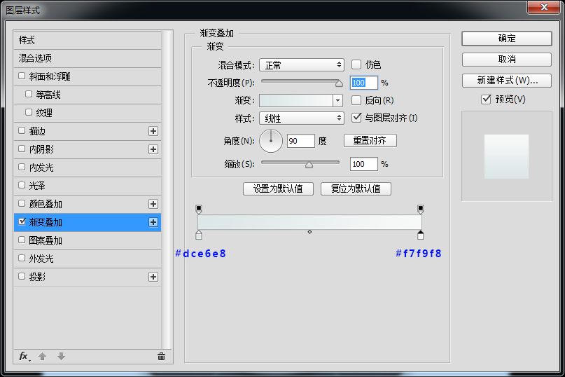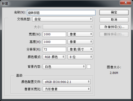 首先新建画布1000px*1000px画布,命名为旋转按钮,为背景添加渐变叠加图层样式。
