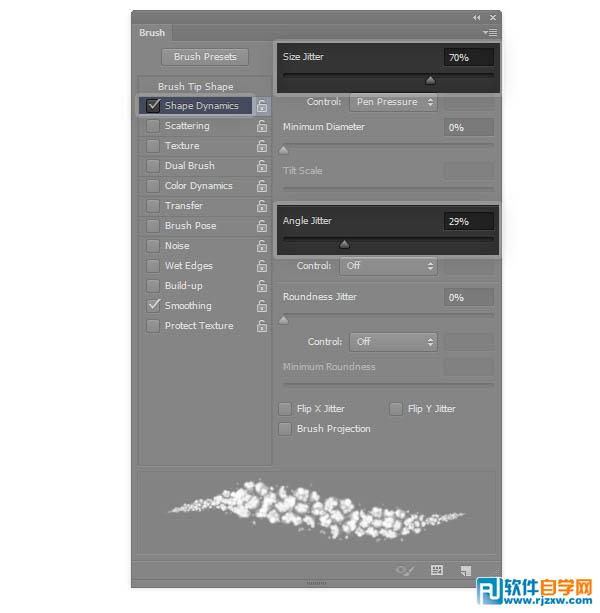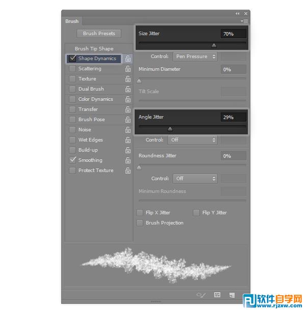 | 13、打开形状动态并设置与之前相似的参数。 |