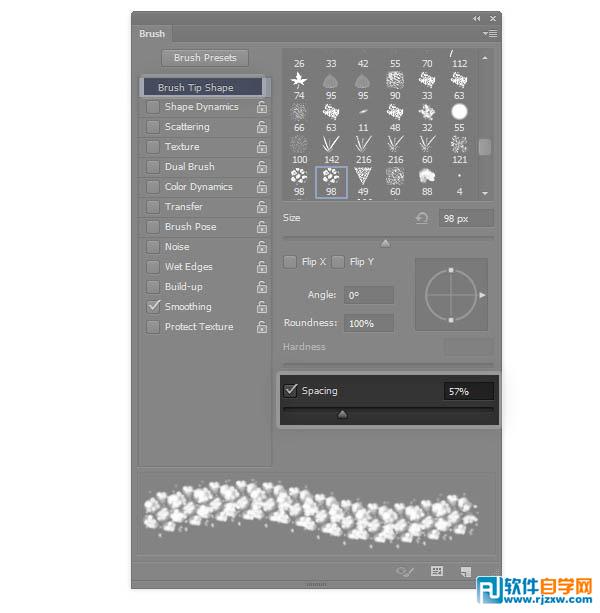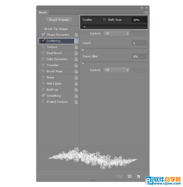 | 12、给笔刷一个大的间距以使“鳞片”分离。 |