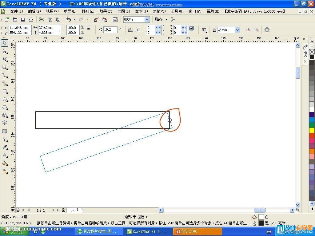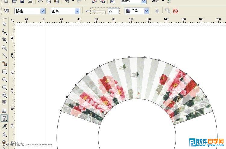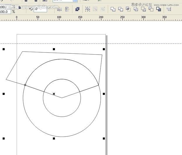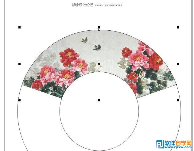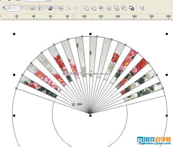 然后用到旋转复制。角度和个数自己控制,填充白色,在把复制的物件群组,再用扇面去相交,得到如图
