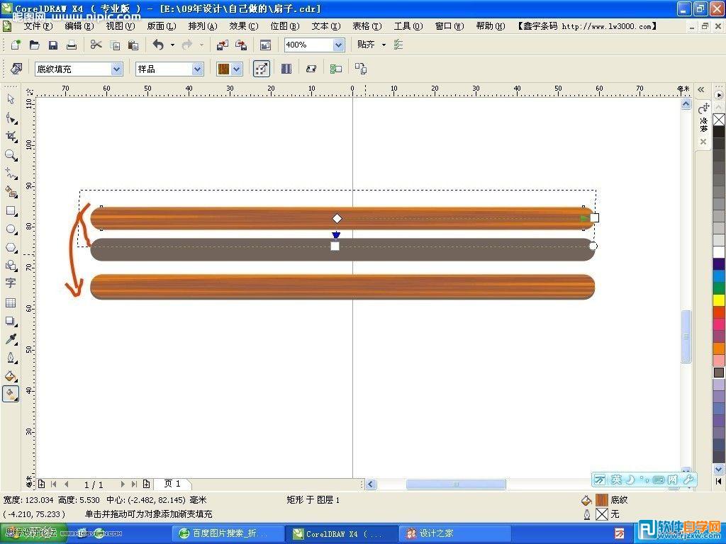画一个倒角矩形,用底纹填充,选择样品-窗帘,颜色先木质的色