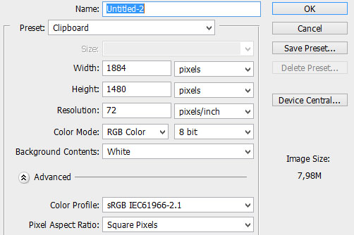 1、点击 文件→新建,将画布大小设置为1884*1480px。