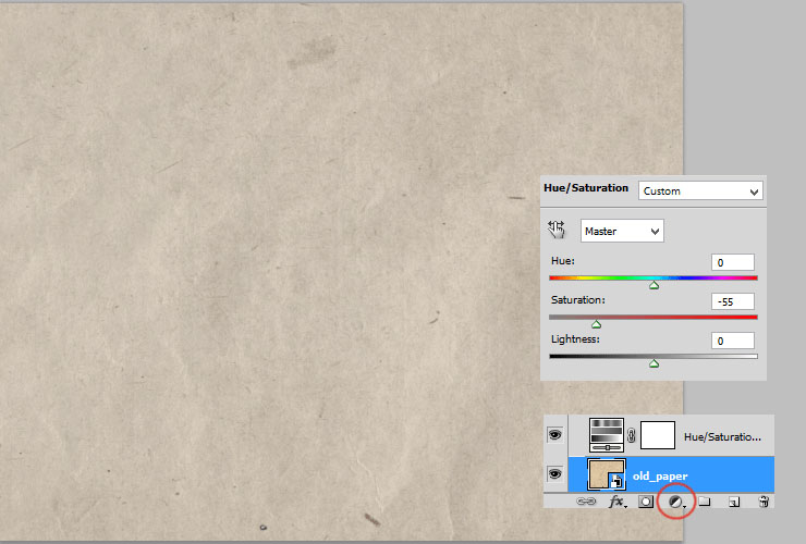 3、我希望纸张能体现出一种褶皱的感觉,并不单单只是旧。 点击 图层→新建调整图层→色相/饱和度,设置如下。