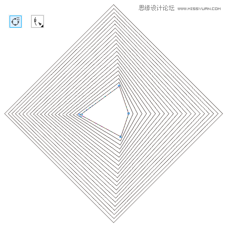 5、或者将原始对象转曲,可以随意调整锚点,只需要调整起始图形和终点图形就好,中间的所有步数都是自动生成的。