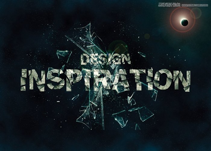 本主要使用制作碎裂视觉效果的颓废艺术字,教程中的文字制作过程比较复杂。首先需要制作一些带有宇宙效果的背景,然后输入想要的文字,并把文字逐个切碎,再加入岩石纹理。后期添加星球及碎玻璃装饰即可。