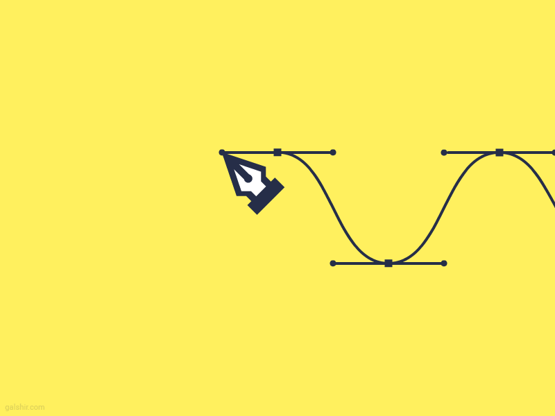 钢笔工具大家应该都很熟悉了,中间一个节点,两边两个手柄,调节手柄的方向可以控制曲线的走向,调节手柄的长度可以控制曲线的弧度。上面的动效设计表达的就是这个意思。