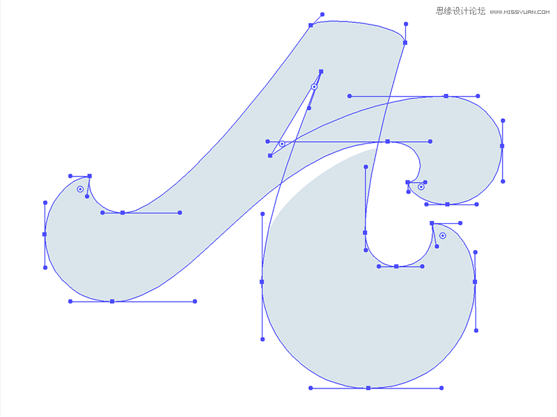 从图片里我们能发现,这些节点的方向都是有规律的,都遵循了一种秩序,第一个规律是:除了曲线结束的角,所有节点的手柄不是水平的就是垂直的,具体情况要根据曲线的走向,如果曲线横着走,手柄方向就水平,如果竖着走,方向就垂直。第二个规律看下面的两张图: