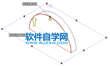 如要在分型线上拔模,您可以首先插入一条分割线来分离要拔模的面,或者也可以使用现有的模型边线。然后再指定拔模方向,也就是指定移除材料的分型线一侧。