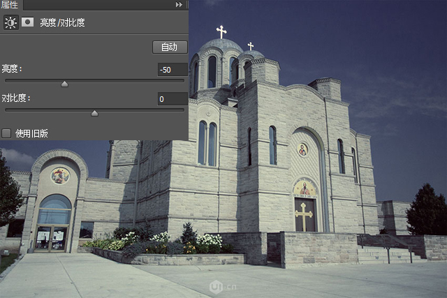Step 2:添加一个“亮度/对比度”调整图层。将亮度设置为-50,使整个图像变暗。