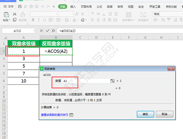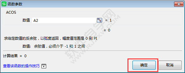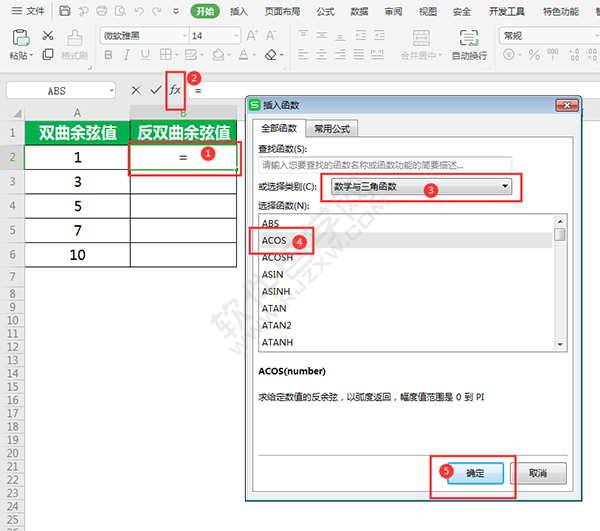 2、点击单元格,点击插入函数,点击数学与三角函数,点击ACOS函数。