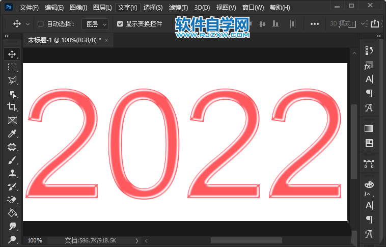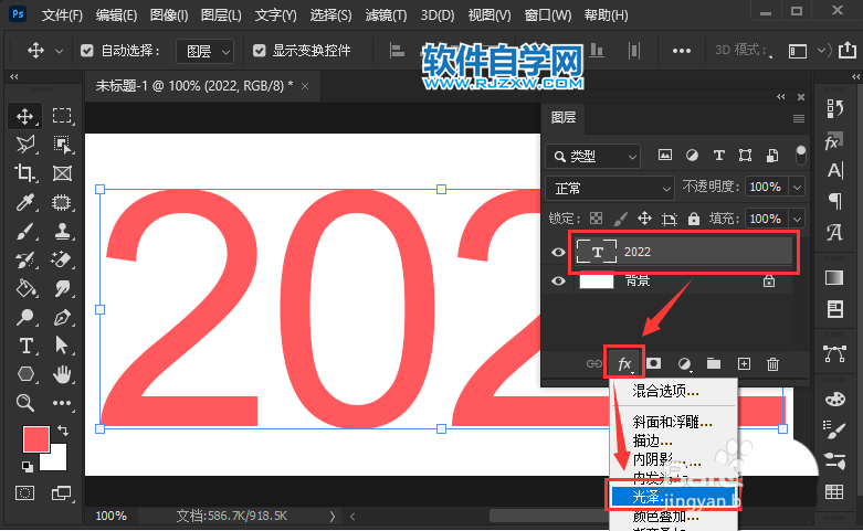 最后,我们看到2022的数字就添加上光泽的效果了。