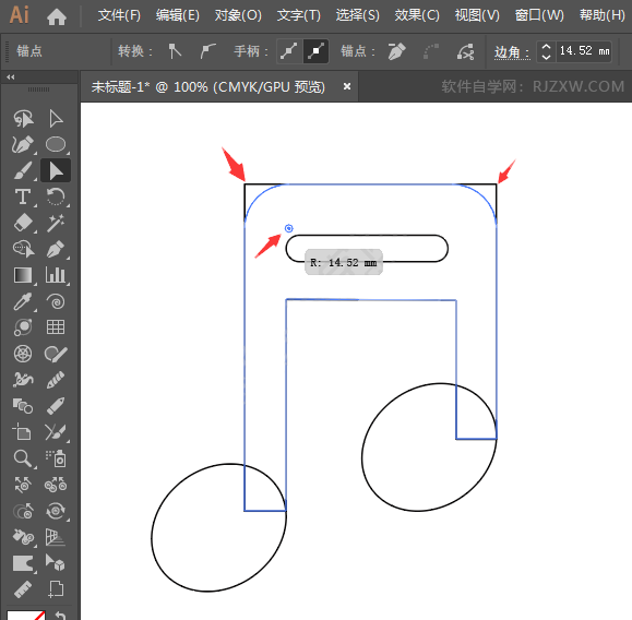 第4步、然后给矩形倒圆角,效果如下: