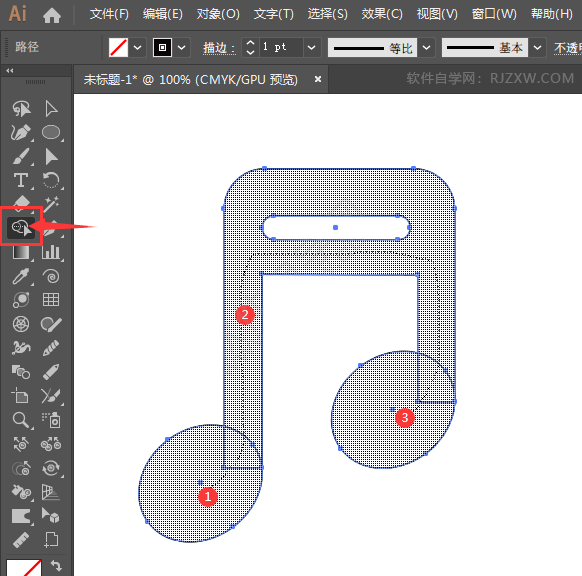 第6步、选中所有对象,点击形状生成器,生成下面的图形出来。