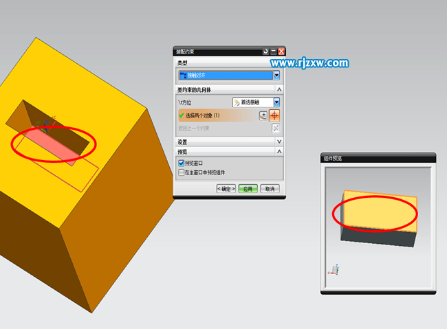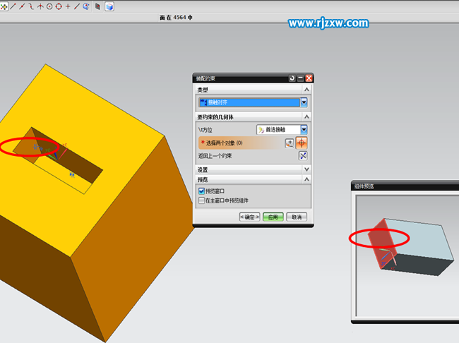 第5步、分别点击两个底面,表示这两个面是互相接触对齐的。