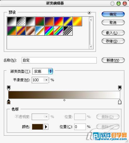 | 2、在渐变编辑器里面设置由深褐色到白色的渐变。如图2所示。 |