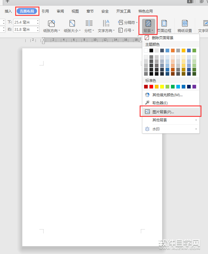第2步、然后点击页面布局,点击背景里面的图片背景。效果如下: