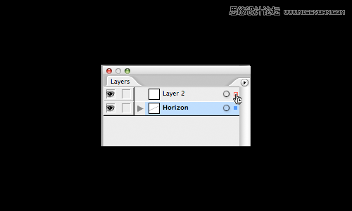 选择“视平线”图层上的所有线条,然后在该图层上点击彩色的框框,并且把它拖拽到新的图层上。但在你执行之前,按住Alt键。这将把所选项目复制拖拽到新的图层上,并且在同一位置上(和原图层的位置相同)。锁定“视平线”图层,然后继续绘制。