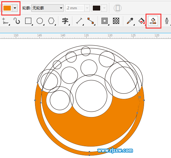第1步、使用椭圆形工具,绘制下面11个圆形,