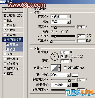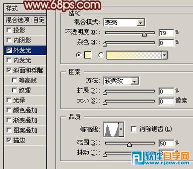 | 3、双击图层调出图层样式,参数设置如图3-5,效果如图6。 |
