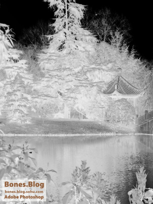 | 4、按快捷键Ctrl(Windows操作系统)/Command(Mac OS X操作系统)+E合并图像,并执行Ctrl(Windows操作系统)/Command(Mac OS X操作系统)+I(“图像>调整>反相”命令 ),将图像反相。 |