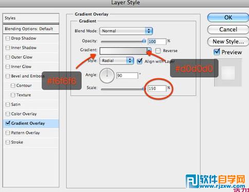 | 2、双击背景层点击OK解锁。现在,右击图层选择混合选项。在这里,我们将添加一个从浅灰色要深色的径向渐变: |