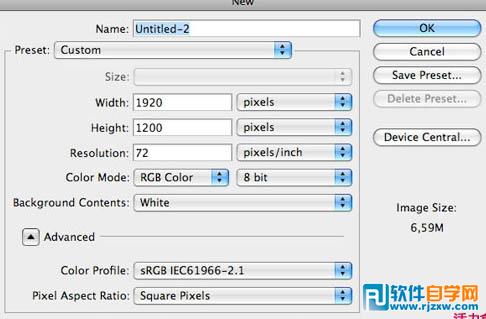 | 1、在 Photoshop 中创建一个新文档,按下图设置: |