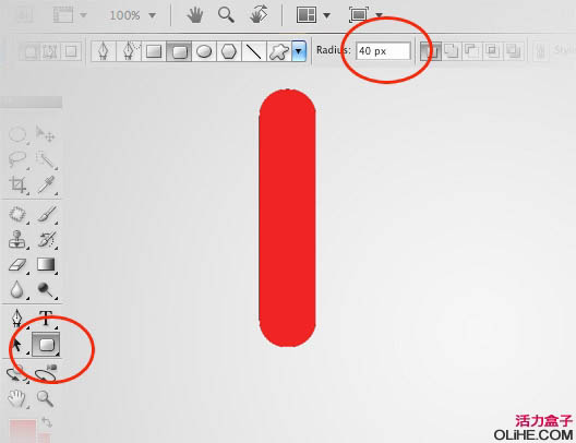 | 3、使用圆角矩形工具,设置半径为40像素,创建一个多边形。现阶段颜色并不重要,因为我们要在之后应用图层样式。 |