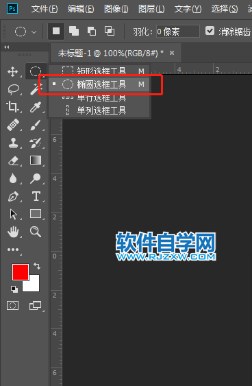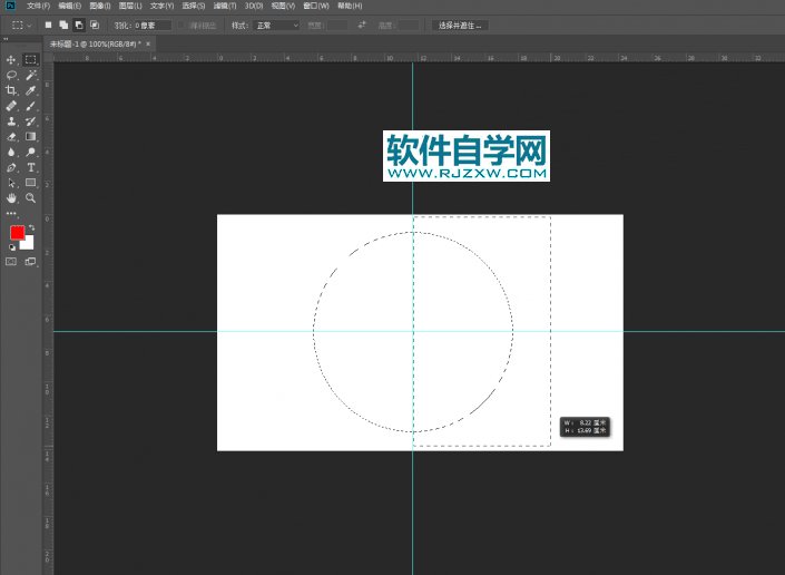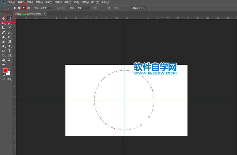 2、选择工具箱中的“椭圆选框工具”,按住Shift键绘制一个正圆选区。