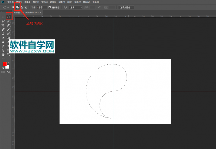 6、 选择“椭圆选框工具”单击“添加到选区”按钮,加上一个圆。