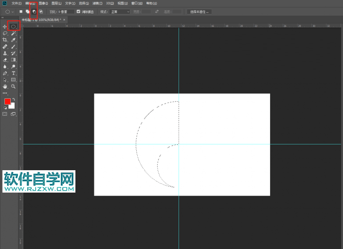 4、在工具栏中选择“从选区减去”按钮,将椭圆选框的半侧减去。