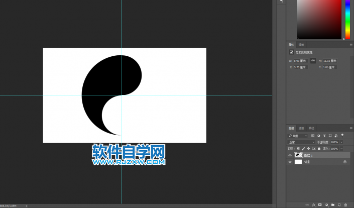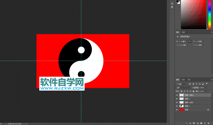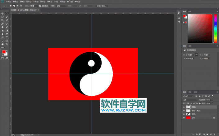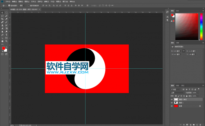 11、按住Shift键向右边拖到,直至完全闭合,选择背景图层将其填充呈红色,选择“图层一拷贝”按住Ctrl键的同时单击“图层缩览图”创建选区,将右半边填充成“白色”。