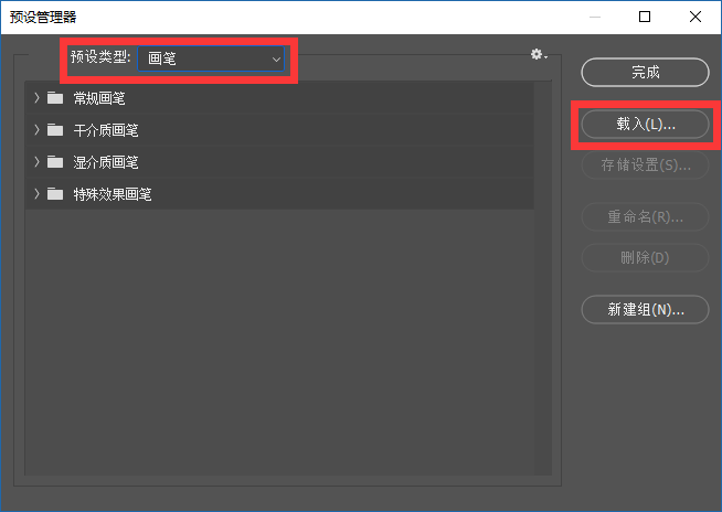 1、首先还是载入预设,我们点进编辑-预设-预设管理器