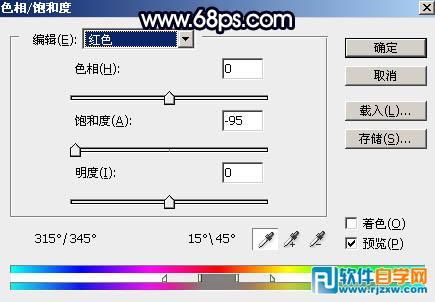 | 1、打开原图素材大图,创建色相/饱和度调整图层,对全图、红、黄、绿进行调整,参数设置如图1 - 4,效果如图5。这一步快速降低主色饱和度,得到中性图片。 |