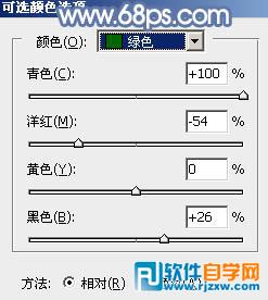 | 2、创建可选颜色调整图层,对黄色,绿色进行调整,参数设置如图3,4,效果如图5。这一步给图片增加橙红色。 |